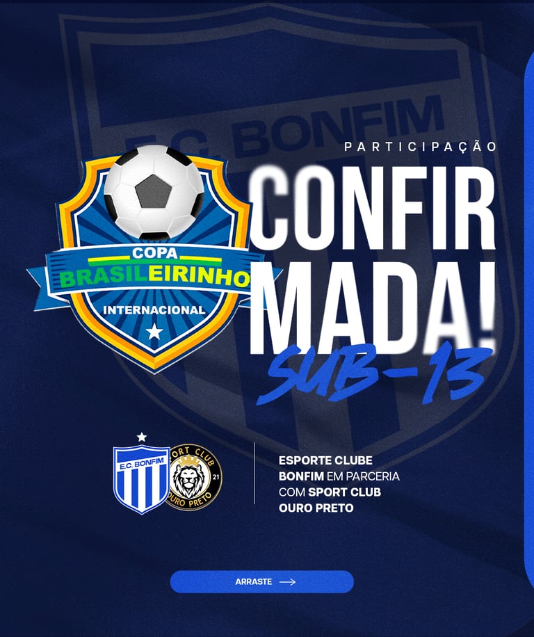 O Esporte Clube Bonfim estará em ação em mais uma importante competição de categorias de base. A equipe disputará a Copa Brasileirinho Sub-13, uma das mais tradicionais e prestigiadas competições de formação do futebol brasileiro, levando a campo o talento e a garra dos jovens atletas do Azulão.