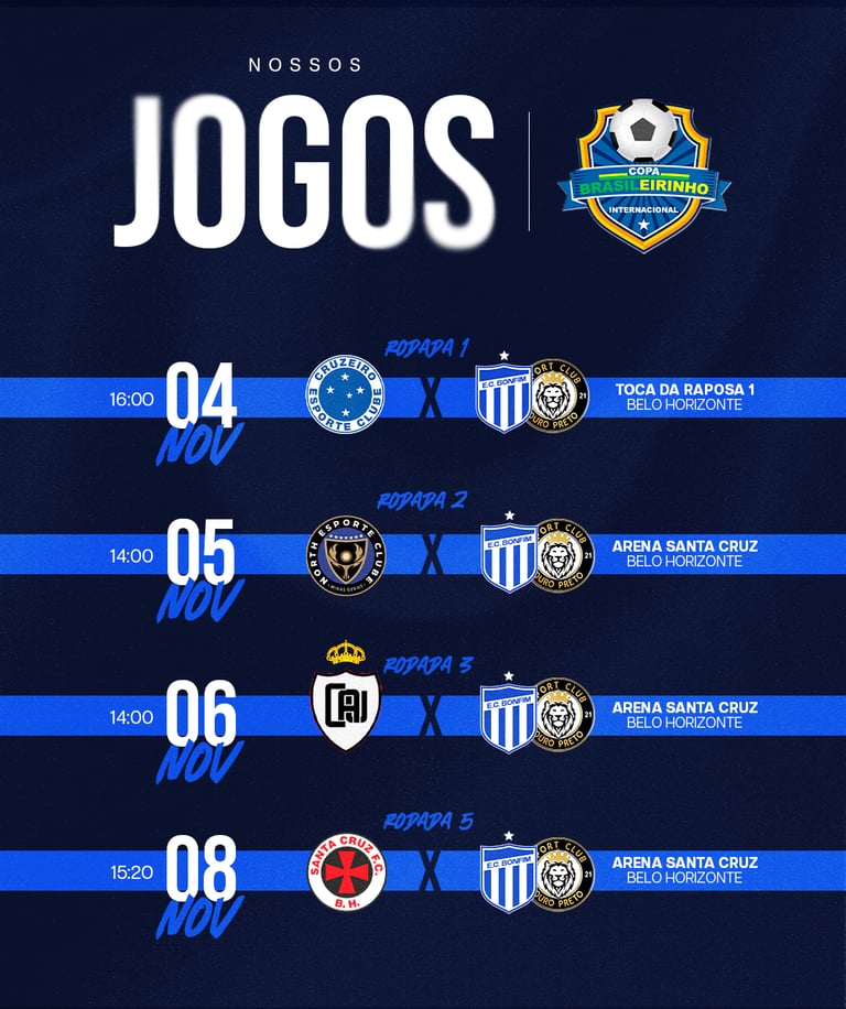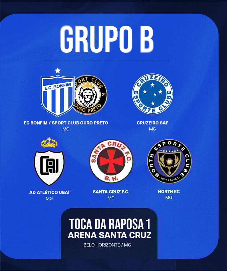 A equipe integra o Grupo B da competição, que conta ainda com Cruzeiro (MG), North (MG), Santa Cruz (MG) e Ubaí (MG) - adversários que prometem duelos de grande qualidade e intensidade.