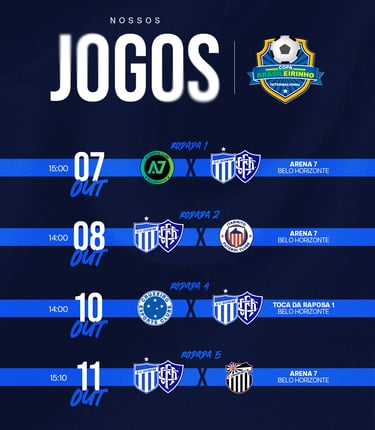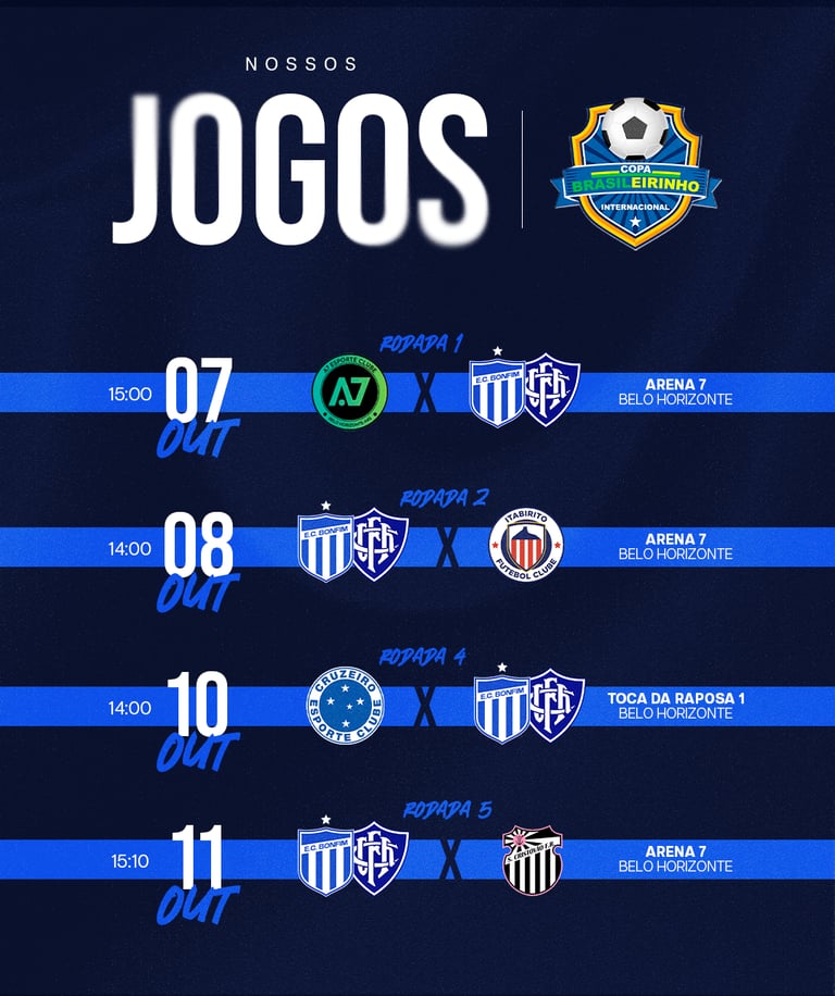 A estreia do Azulão está marcada para o dia 7 de outubro, diante do Arena 7 EC